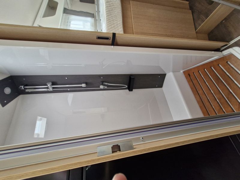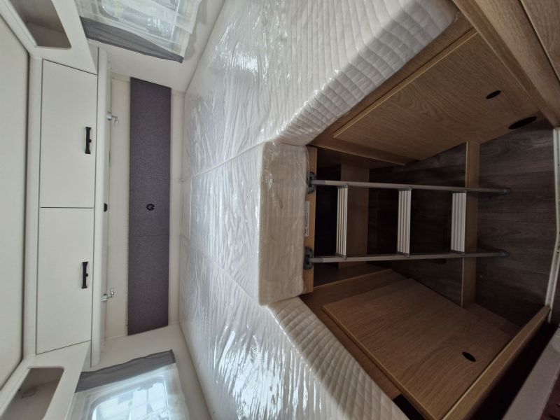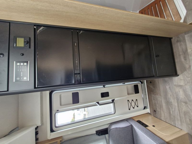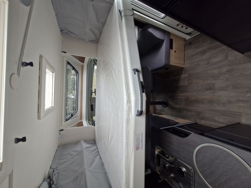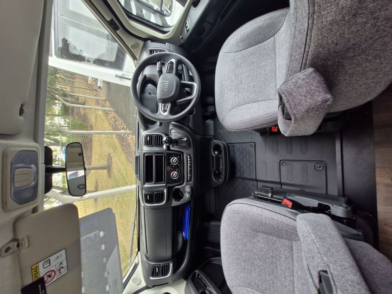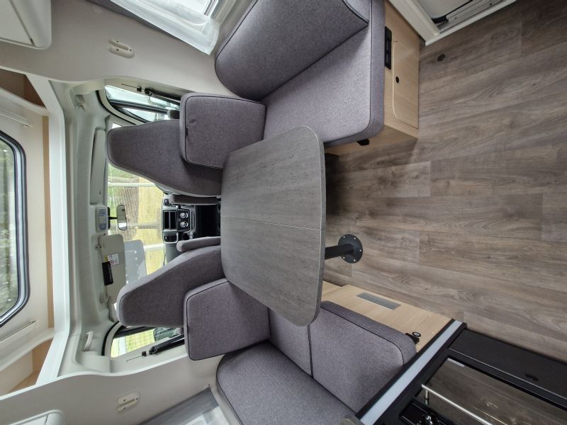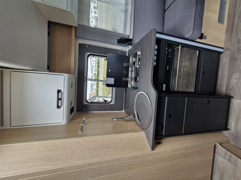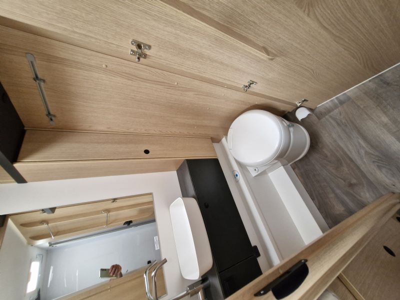 Comfort • Ergonomically shaped upholstery for improved seating comfort • Spacious storage compartments and storage options • Ventilation for storage locker and seat backrest • High-quality mattress in all beds • Mattress cover removable and washable • Wooden slatted frame in all fixed-beds for better sleeping comfort • Floor Mountain Lodge • Isofix for 2 seats • Furniture Decor Cozy Cottage, Black Flow, Dyna White und Active Grey • Mirror with indirect lighting and coat hooks • Bed conversion single to double bed • Carpet Kitchen • Ergonomically arranged kitchen with spacious work top • Flexible railing system with two hooks • Large drawer with soft-close in the kitchen unit • Large, round kitchen sink in stainless steel • Water tank incl. boiler 122 l, waste water tank 92 l • Two-flame cooker with 12 V ignition and glass cover • Oven in kitchen • Large 156 l fridge with separate 29 l freezer compartment Heating / gas supply • Gas bottle locker for 2 x gas bottles • Gas control valves easily accessible and centrally arranged • Heating Combi 6 E (with el. heating element) incl. digital control panel Conversion • Roof light with frosted perspex glas and flyscreen • Payload in garage up to 150 kg • Aluminium sidewalls • Splash water seals for the exterior storage locker and doors • High quality entrance door with ergonomic handle inside and outside • Large rear garage with lowered frame, lashing rings and interior lighting (depending on model) • Design rear light carrier in three parts with full-LED lights • Electric entrance step • Roof and sidewall thickness: 34 mm, floor thickness: 42,5 mm • GRP (glass fibre reinforced plastic) roof and rear wall • 7-year water ingress warranty • Double glazed hinged window with cassette blinds and flyscreens (except for bathroom) Bathroom • Clothes rail in bathroom • Large mirrors • Spacious bathroom with separate shower on the opposite side • Flexible railing system with two hooks • Roof vent with integrated flyscreen blind (depending on model) • Swivel cassette toilet with electric flush • Shower cubicle lining Installations • Automatic switching and separating systems for starter and leisure battery as well as for refrigerator • Overhead locker with integrated LED light • Bord-control-panel supplies information about filling levels and battery capacity • CEE 230 V external socket with safety device • Electric charger for leisure and vehicle battery 12 V / 18 A • LED Awning light • LED interior light • High-performance, maintenance-free leisure battery (95 Ah AGM)